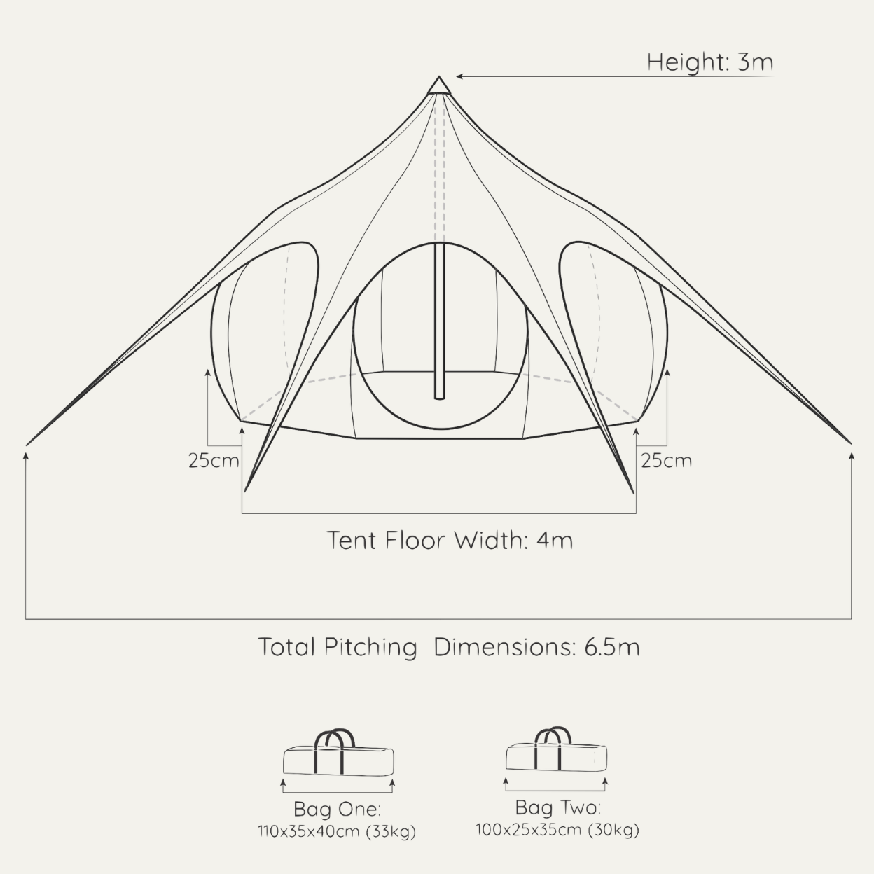 - Large zipped doorway with zipped mesh (fly screen) layer
